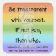 Un petit garçon transparent est debout avec les paroles de David A. Carrizales vu en face de lui avec un arrière - plan de couleur arc-en-ciel. La citation nous rappelle l'importance d'être transparents avec ceux qui nous entourent ainsi qu'avec nous-mêmes. Image de Christie Black de Creations from the Heart.