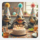 Sticker Carré Turtles celebrating birthday with cake and hats