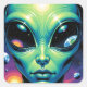 Sticker Carré Visage Alien avec des planètes Réflexions dans les