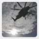 Vue en angle bas d'un hélicoptère CH-53E Super Stallion en vol avec giravion.