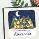 Aquarelle Bois Animaux et pins, Ciel étoilé et Étiquettes de plaques de lune. Bébé Les animaux comprennent l'ours, le cerf, l'orignal, le raton laveur, le lapin lapin, le renard et la chouette avec la végétation forestière. Ajouter un nom.