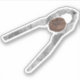 Illustration stylisée d'un casse-noix métallique et d'un noyer prêt à être ouvert.