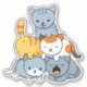 Funny illustration of five cartoon cats in a pyramid formation with two cats at the bottom, two in the middle, and one on top. The cats have different markings and various expressions. One appears to be facing away.
