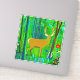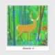 Sticker dans une illustration stylisée d'un cerf dans un cadre forestier de conte de fées, entouré d'arbres et de plantes, dans les tons brun et vert