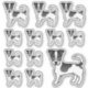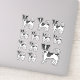 Dessin original de Destei illustrant un manteau rugueux noir et blanc Jack Russell Terrier chien de race. La conception est placée 12 fois sur la feuille en trois tailles différentes. Il y a un chien plus gros, trois chiens de taille moyenne et huit chiens de petite taille.