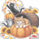 Sticker Chats Automne Citrouilles Thanksgiving Sunflower O