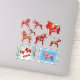 Cette page d'autocollants présente une collection de modèles de chevaux de dala de dessins de chevaux de dala en bois, conçus, sculptés et peints par Julia Persson Morrill