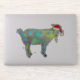 Chèvre drôle drôle et colorée portant un chapeau de Père Noël. Humour d'art animal de ferme pour ravir vos amis et votre famille. Chèvre festive mignonne avec motif turquoise oeuvre originale de l'artiste Catherine Sweetman
