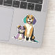 Ce design autocollant comporte deux chiens colorés, heureux et amicaux. Il s'agit d'un excellent design pour les propriétaires de chiens et les amoureux de les chiens.