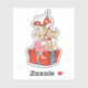 This absolutely darling illustration captures a moment of pure holiday joy! Cindy Lou Who, dressed sweetly in pink with her big red bow, is sitting happily atop a large, colorful Christmas present (red with a blue ribbon). Beside her sits her loyal friend, Max the Dog, looking cheerful and sporting his single reindeer antler! This heartwarming graphic perfectly celebrates friendship and the sweet excitement of Christmas morning.