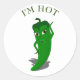 Un personnage de dessin animé vert et poivre chaud. Design original. Version avec texte personnalisable et couleur arrière - plan. Cet autocollant peut être utilisé dans les bouteilles de sauce et d'autres aliments chauds. Pour le plaisir et comme un signal d'avertissement.