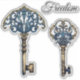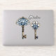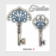2 clés, bronze et bleu. Le texte est personnalisable. Il y a 3 sortes de médias à choisir. Conçu pour l'autocollant de taille moyenne mais il convient aussi aux autres. Taille : moyenne 6 po x 6 po