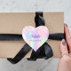Un fond holographique tendance en rose, violet, vert menthe. Décoré de confettis. Lettres de couleur violette. Personnalisez et ajoutez votre nom. Parfait pour marquer vos affaires scolaires.
