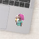 Sticker Coiffeuse rose tenant un cône de crème glacée