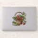 Collier autocollant avec une vibe d'été fraîche. Une jolie illustration avec des fraises fraîchement cueillies remplissant un pittoresque panier en osier.