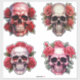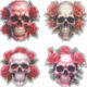 Un crâne aux roses rouges. Cette image exquise mêle harmonieusement les éléments contrastés de la vie et de la mort, de la beauté et de la décadence, pour créer une composition visuelle fascinante et stimulante. Ensemble de quatre crânes avec roses sur la tête, art gothique art numérique, illustration numérique, fait de fleurs.Vie et mort, force et fragilité, et beauté dans des endroits inattendus.