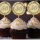 Golden 50th Anniversary Cupcake topper. Personnalisez vos cupcakes avec un dessus autocollant. Retournez sur un collipop stick ou un cure-dents - Les invités de votre fête aimeront ces gâteries uniques avec une touche personnelle! Autres articles correspondants disponibles dans notre magasin.