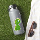 Dinosaure vert mignon avec taches vert clair et épines jaunes, yeux bleus et un sourire heureux.