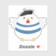 Un autocollant amusant pour les enfants avec une poule blanche portant un béret et une chemise rayée. Pourrait-elle être une poule française ? Restez sur votre carnet, votre ordinateur portable ou votre journal ! Design © Lisa Marie Robinson. Tous droits réservés.