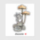 Sticker Cute Mouse Standing on Rocks, with Mushrooms