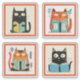 Sticker Cute Nerdy Chats Lecture Livres Whimsical Timbre P