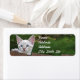 Sticker d'adresse de retour de chat Savannah blanche. Arrière - plan prêt pour vous à ajouter vos propres images et texte.