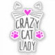 Crazy cat lady en majuscules sans style manuscrit police lettering typographie avec deux empreintes de pattes rose néon et un rose qui sert de nez de chat avec whiskers noirs et deux oreilles triangles.