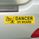 Sticker pare-chocs Dance Papa Jaune. Le design se compose de : Costume/robe de danse, chaussures de robinet, note de musique et étoiles.(DANCER À BORD). Idéal pour les Dance Dads, conduisant leurs jeunes stars de danse à et de classe de danse etc.