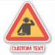 Panneau de signalisation de danger avec un DJ au travail. Texte personnalisé.