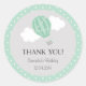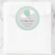 Autocollant rond pour la fête d'anniversaire avec menthe vert montgolfière design et arrière - plan de polkadot.