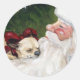 Cet autocollant présente une reproduction de ma peinture à l'huile originale d'un chihuahua et du Père Noël.