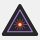Autocollant triangulaire noir avec un symbole d'avertissement laser violet et orange.
