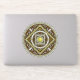 Ce mandala a été conçu pour le signe zodiaque Gemini, représentant une pierre de citrine au centre entourée d'éléments représentant le signe, tels que le symbole du signe, la constellation, et le symbole alchimique de l'Air, ainsi que des vignes et des tissages filaires qui l'enveloppent dans une image solide dans les tons jaune, argent et marron.