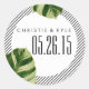 Ajoutez un étiquette personnalisé à votre ensemble d'invitations de mariage sur la plage. Ces autocollants présentent des dessins botaniques vintages de feuilles de palmiers tropicaux, au sommet d'un arrière - plan rayé noir et blanc moderne et sont parfaits pour un mariage à la plage, un mariage de destination ou tout mariage à thème nautique. Customisez cet autocollant mariage d'inspiration art déco vintage avec vos noms et date de mariage pour un ajout unique à votre faire-part de mariage.