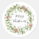 Ajoutez vos cadeaux et vos cartes avec cet autocollant de couronne d'aquarelle. Une couronne verte et rouge et un message "Joyeux Noël" au centre. Aquarelle créée par Night Sky Paperie. Forme : Finition ronde : Taille(s) matte(s) : 1,5 po ou 3 po