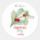 L'autocollant Festive botanique de Noël élève votre papeterie de fête de Noël et les autocollants de fête. Elégant feuillage botanique avec baies rouges sur fond blanc immaculé avec une police festive qui dit, "Joyeux Noël" séduit l'hôte minimaliste qui aime les provisions de fête soigneusement entretenues. Customisez-le avec votre nom et la date est facile à faire. Si vous organisez une fête de vacances, vous pouvez trouver d’autres fournitures de fête avec ce thème design dans la collection Festive Watercolor Greenery and Berries de la boutique The Gathering Designs.