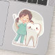 Un autocollant mignon avec un kawaii dentiste, dent heureuse et brosse à dents.