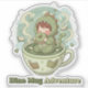 A cute anime-style illustration featuring a cozy dinosaur-themed adventure.