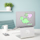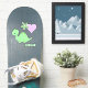Un mignon petit dinosaure vert pour bébé est l'autocollant caractéristique de cet adorable ensemble. Avec le dinosaure, il y a une fleur verte et un coeur rose. Le nom de votre enfant est en vert correspondant sur un autocollant séparé.