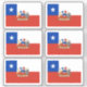 Six autocollants vinyliques coupés sur mesure avec le drapeau de la République du Chili ; un drapeau rouge, blanc et bleu avec une étoile blanche dans un carré bleu et avec l'emblème national du Chili avec un condor andin et un huemul au centre
