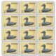 Un timbre-poste d'un Alaska mythique et indépendant, orné d'une sculpture en pierre à savon d'un canard à Eider. L'arrière - plan est peau d'orignal tannée au cerveau. Il s'agit d'un rendu numérique, pas d'un objet en pierre à savon. L'Eider à duvet, Somateria mollissima, est le plus grand canard d'Europe et d'Amérique du Nord (à l'exception du Canard de la Muscovy qui ne touche que l'Amérique du Nord dans un état sauvage à l'extrême sud du Texas) L'Eider est distribué sur les côtes nord de l'Europe, de l'Amérique du Nord et de la Sibérie orientale. Il se reproduit dans l'Arctique et dans certaines régions tempérées du nord, mais hiverne un peu plus au sud dans les zones tempérées, lorsqu'il peut former de grands troupeaux dans les eaux côtières. Il peut voler à des vitesses allant jusqu'à 70 mi/h (113 km). L'Eider se caractérise par sa forme encombrante et son grand bec en forme de coin. Le mâle est indéniable, avec son plumage noir et blanc et sa nuque verte. La femelle est un oiseau brun, mais on peut toujours facilement la distinguer de tous les canards, sauf d'autres espèces d'eiders, en fonction de la taille et de la forme de la tête. L'appel de ce canard est un joli "ah-ooo". L'espèce est souvent facilement accessible. Les dessins des races d'Europe, de l'Est de l'Amérique du Nord et d'Asie/Ouest de l'Amérique du Nord peuvent être distingués par des différences mineures de couleur du plumage et du bec. Cette espèce plonge pour les crustacés et les mollusques, les moules étant un aliment favori. L'Eider mangera les moules en les avalant entières; les coquilles sont ensuite écrasées dans leur estomac et excrétées. Lorsque vous mangez un crabe, l'Eider enlève toutes ses griffes et ses pattes, puis il mange le corps de la même façon. Il est abondant, avec des populations d'environ 1,5-2 millions d'oiseaux en Amérique du Nord et en Europe, et aussi un grand nombre mais inconnu dans l'est de la Sibérie. Une colonie d'eiders particulièrement célèbre vit sur les îles Farne, à Northumberland, en Angleterre. Ces oiseaux ont fait l'objet de l'une des premières lois sur la protection des oiseaux, établie par Saint Cuthbert en 676. Environ 1 000 couples y nichent encore chaque année. Comme Saint-Cuthbert est le saint patron de Northumberland, il était naturel que l'eider soit choisi comme oiseau emblème du comté; les oiseaux sont encore souvent appelés canards de Cuddy dans la région, "Cuddy" étant la forme familière de "Cuthbert". L'Eidre commun est l'une des espèces auxquelles s'applique l'Accord sur la conservation des oiseaux aquatiques migrateurs d'Afrique-Eurasie (AEWA). Les eiders sont des éleveurs coloniaux. Ils nichent sur les îles côtières dans des colonies de moins de 100 à plus de 10 000 à 15 000 individus. Les eiders femelles présentent souvent un haut degré de philopatrie natale, où ils reviennent se reproduire sur la même île où ils ont été éclos. Cela peut conduire à un degré élevé de relation entre les individus qui nichent sur la même île, ainsi que le développement de structures sociales féminines basées sur la parenté. Cette relation a probablement joué un rôle dans l'évolution des comportements de reproduction coopératifs chez les eiders. Parmi ces comportements, on peut citer la ponte d'oeufs dans les nids d'individus apparentés et la crèching, où les eiders femelles s'associent et partagent le travail d'élevage des ducklings. Le nid de l'eider est construit près de la mer et est bordé de la célèbre édredon, arraché du sein de la femelle. Ce revêtement doux et chaud a été longtemps récolté pour remplir les coussins et les courtepointes, mais ces dernières années a été largement remplacé par le duvet des oies agricoles domestiques et des alternatives synthétiques. Bien que les coussins de duvet ou les courtepointes soient maintenant rares, la récolte des duvet se poursuit et est durable, comme cela peut être fait après que les canetons quittent le nid sans nuire aux oiseaux.