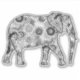 Sticker dans un média mixte graphique numérique d'un éléphant - motif tourbillon fractal en noir, blanc et nuances de gris / gris contre un arrière - plan gris argenté