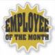 Employé du mois bouton ou autocollant pour honorer les employés de votre entreprise dispose d'un type courbé en gras et d'une forme de starburst or.