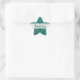 Un ensemble d'autocollants étoiles "Merci" d'un noeud celtique bleu-vert répété la conception de carreaux de diamant contre un arrière - plan noir. Ou, customisez "Merci" avec votre propre message ! Aussi disponible sous d'autres formes !