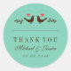 Autocollant design vintage pour la faveur de votre mariage. Style rustique merci sticker étiquette pour votre mariage classique et élégant. Customisez le libellé pour toute occasion, comme la douche nuptiale, la fête de fiançailles, le baby shower, l'anniversaire ou la fête d'anniversaire. Décoré deux oiseaux, petits coeurs et feuilles. Deux tourtereaux tombant amoureux. Vous pouvez customiser la couleur arrière - plan de cet autocollant en cliquant sur le bouton "customiser" pour plus d'options.