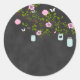 Sticker en tableau avec fleurs roses et jarres en Mason bleu