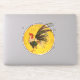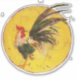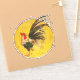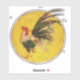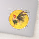 Un coq qui s'avance devant un soleil jaune. Le Cockscomb est rouge vif, les plumes sont dans les tons verts et oranges. Céramique originale Art de Nora Chen.