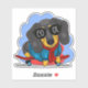 Cool Dachshund Dog avec lunettes de soleil - Skateboard Skateboard sur un Sticker 4" - Vous pouvez facilement changer la taille de cet autocollant - de 2" à 14" disponible - - Voir la catégorie Stickers dans mon magasin pour beaucoup plus de grands Stickers