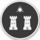 "Sable, deux tours et en chef un mullet de trois points de plus et six points de moins."