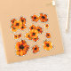Ensemble de 9 fleurs de capucine orange vif assorties sur une feuille. Les fleurs sont des autocollants découpés de contour, et d'un design stylisé.